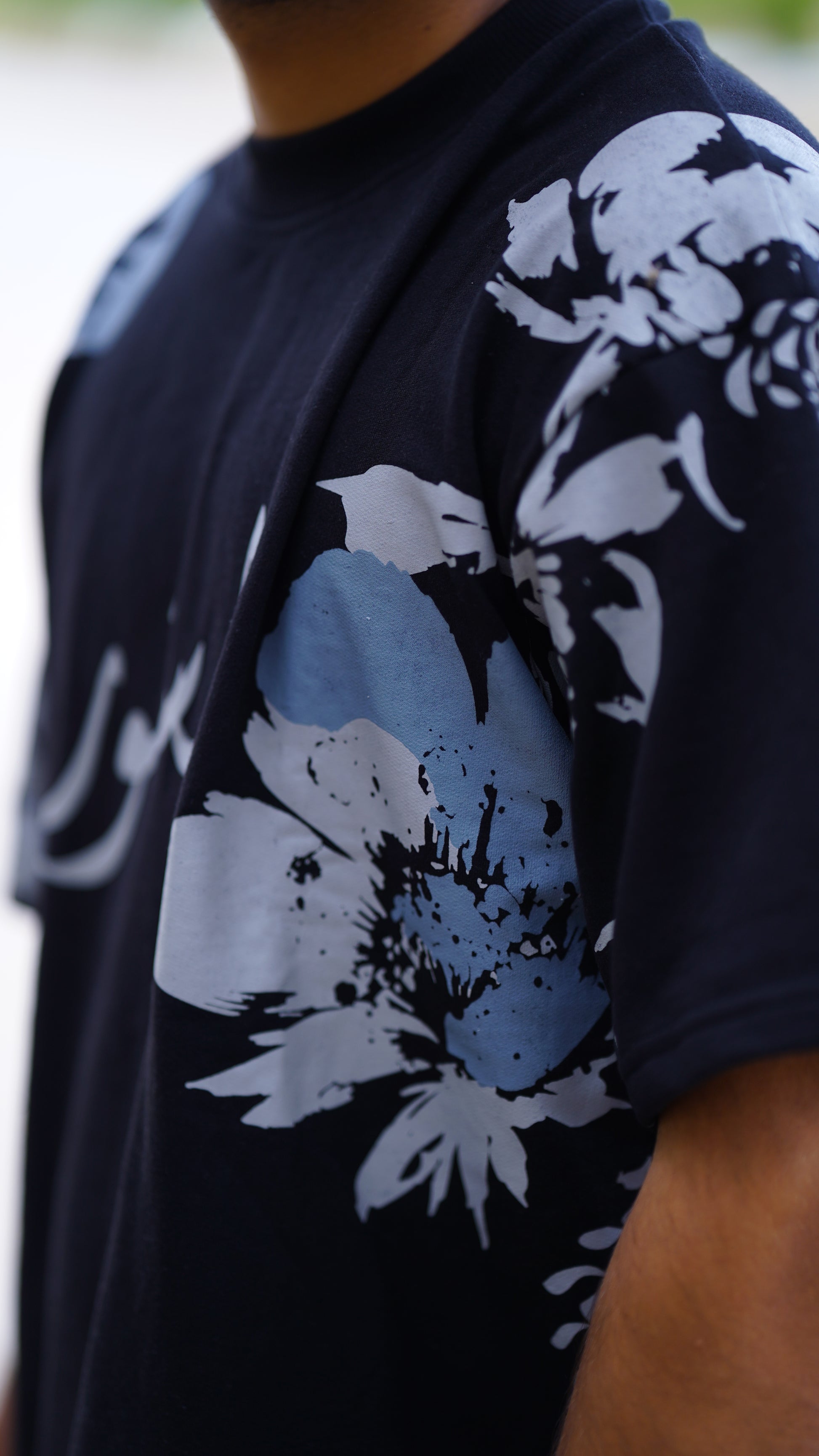 The Gul Posh T-Shirt blends modern style with cultural expression. Designed in black and adorned with elegant blue and white floral prints alongside Urdu calligraphy, it makes a bold yet refined statement. Crafted from premium 240 GSM cotton French terry, this tee offers a soft, breathable feel with a relaxed oversized fit.